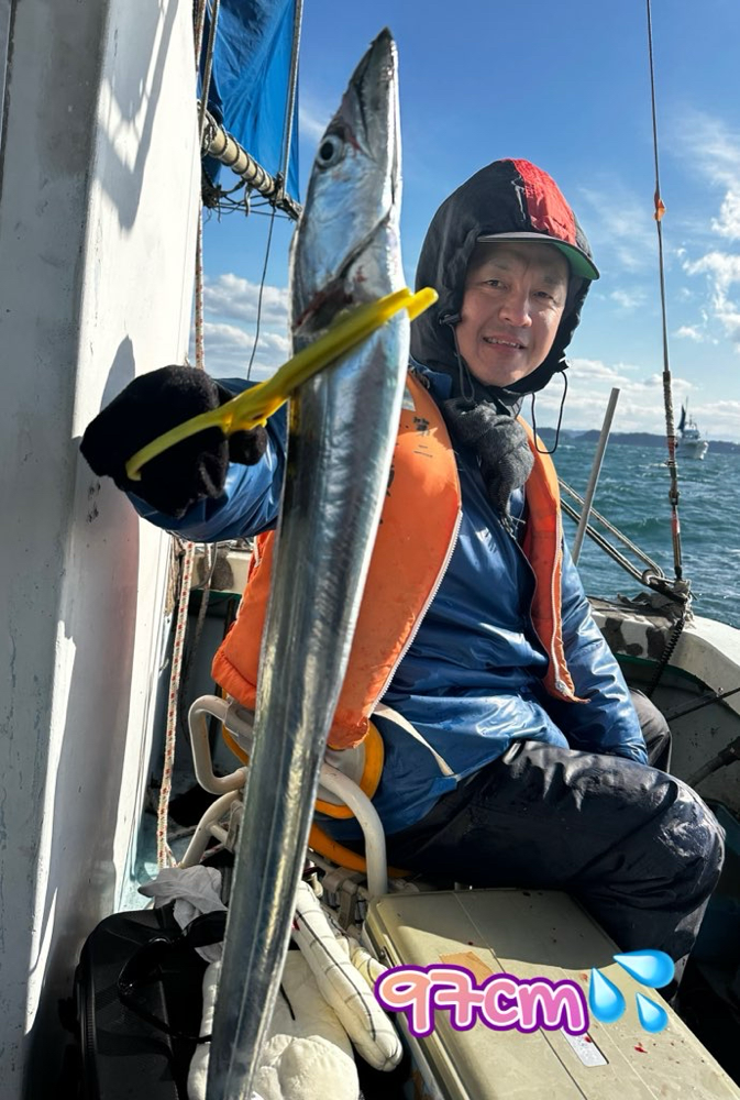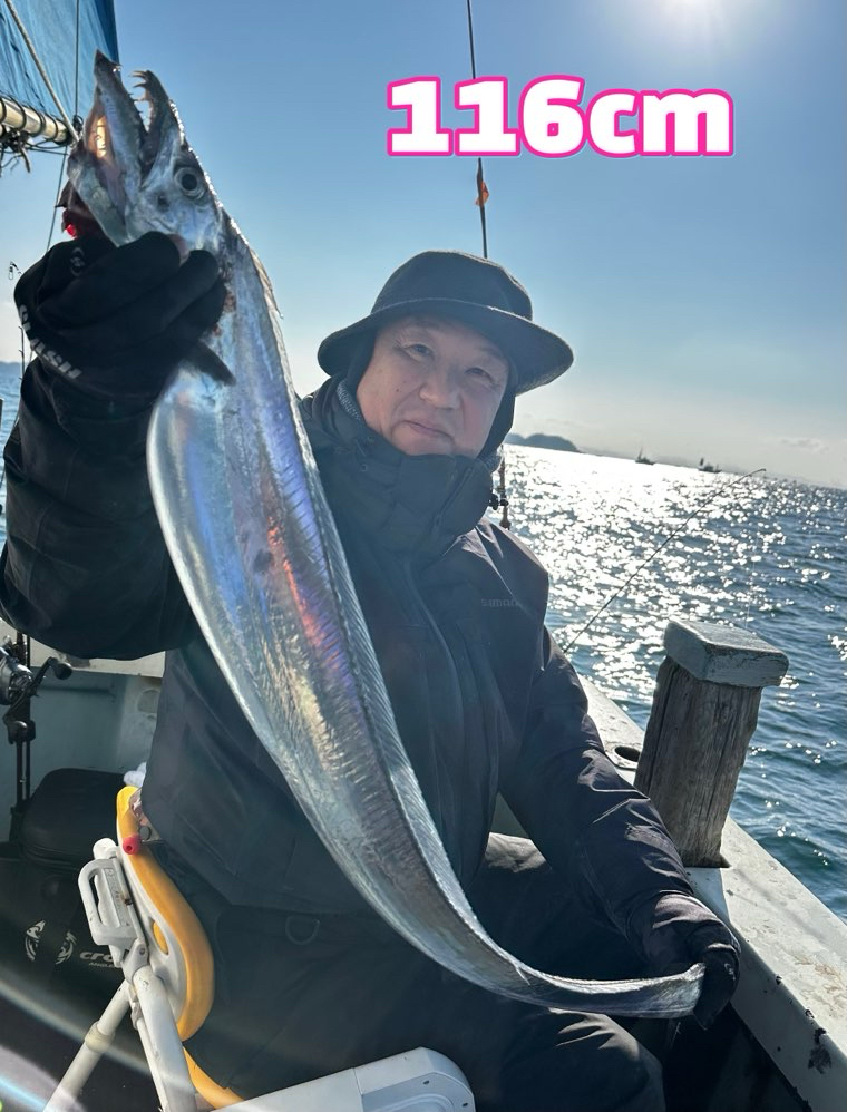 朝イチ明るくなってから、ポツポツとアタリが出始め、それからもポツポツ…、中盤もポツポツ…、帰りまでポツポツ…って感じでした〜 メーター超ありそうなのに限って尻尾がない🥹 もう少しアタリ欲しかったですね! 別所さん タチウオ 95センチまで 11匹‼️ 成富さん 95センチまで 11匹‼️ 他、10匹、10匹、9匹などなど