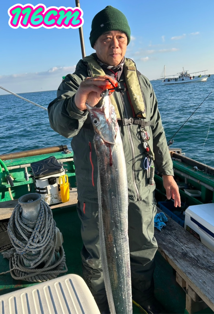 朝からまだ少し波が残っていてました🌊 ポツポツとアタル感じで、もう少しアタリ欲しかったですね〜🥹 そろそろ良い潮周りになるので期待しましょう😁 松尾さん タチウオ 100センチまで12匹‼️