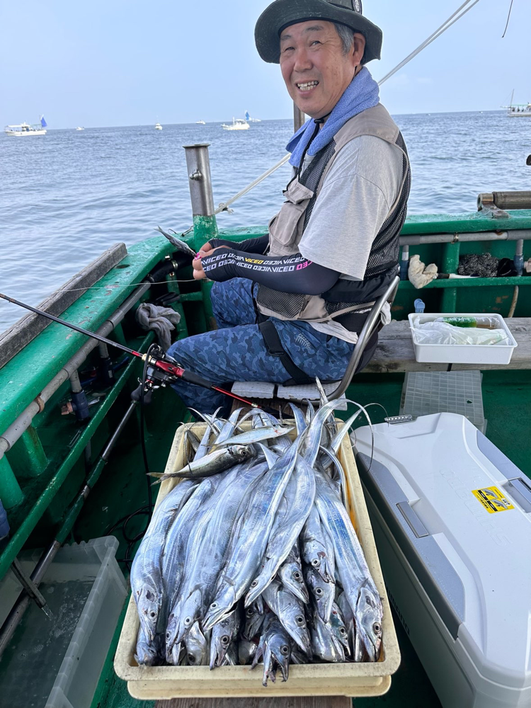 今日の朝イチはタチウオの猛攻撃‼️すぐ仕掛け止められます。こんなの初めてです😱切られたりも…🥲 その後も連日同様、帰りまでアタリが続いていました!サイズもだんだん良くなってきています😆 井戸さん タチウオ 95センチまで 93匹😳 安井さん タチウオ 95センチまで 93匹😱 他にも、80匹、75匹などなど...