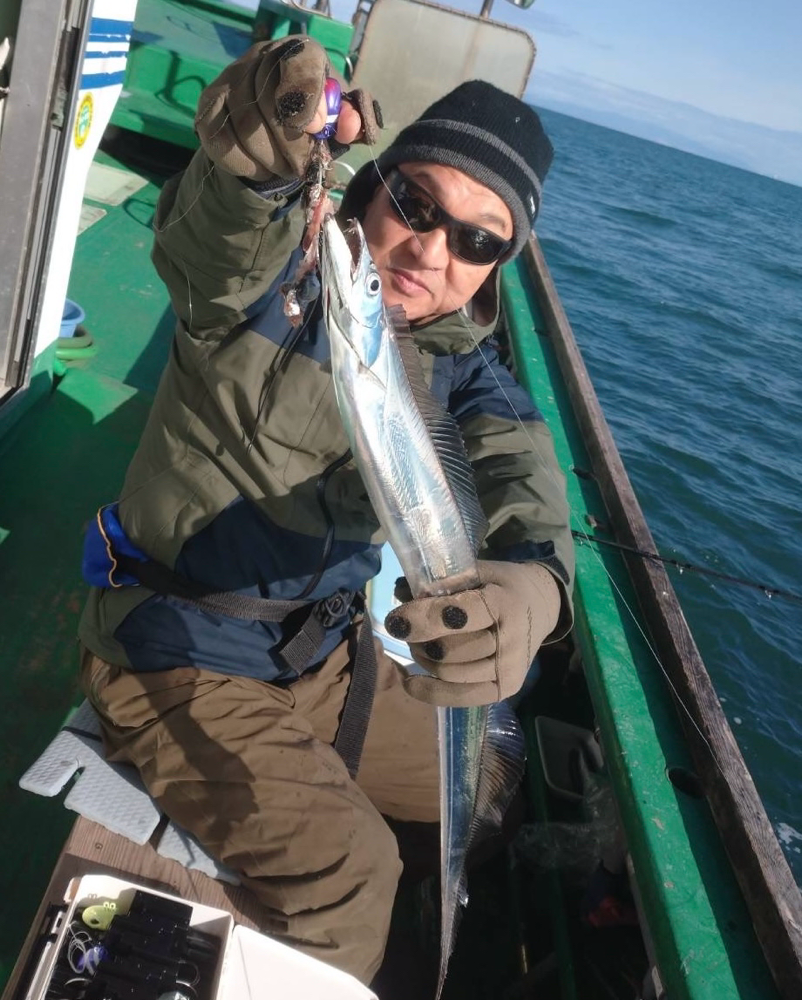今日は出船しておりません。 明日(月)は穏やかになりそうな予報です。 タチウオ狙いとなります。 ゆったりと空いていますので、ご予約お待ちしております!