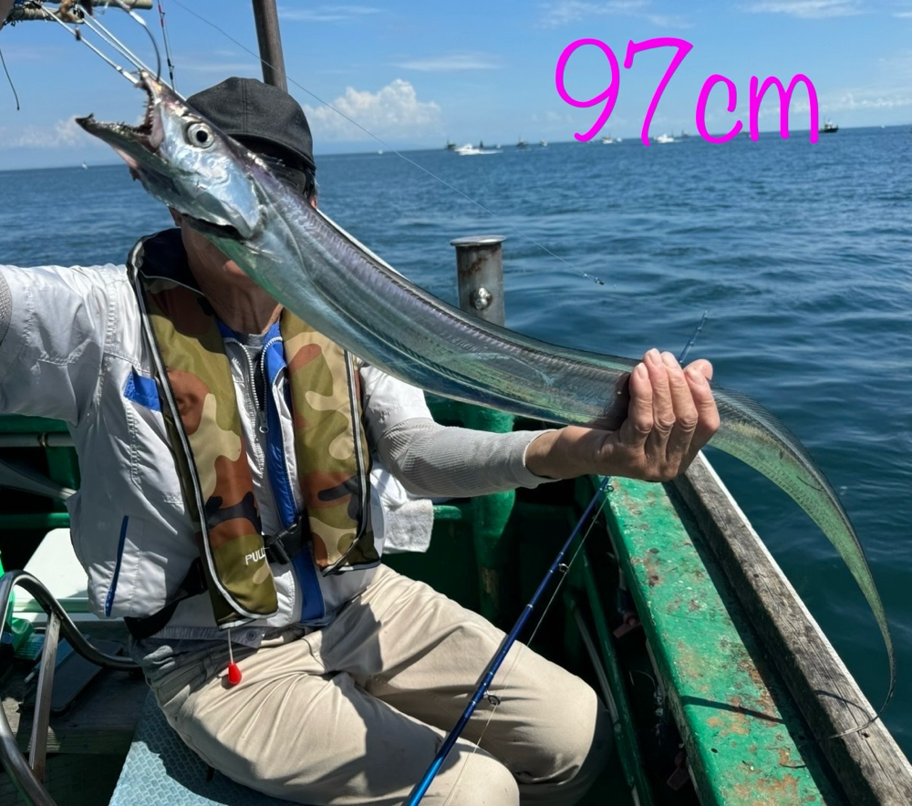 今日もポツポツとアタリが出ていました。アタリの多い時間帯もあり良かったです! 小さいのも多いですが、90センチ級も連続で釣れたりもしていました👍 テンヤのみて釣ってもらいています。 安田さん タチウオ 95センチまで 20匹‼️