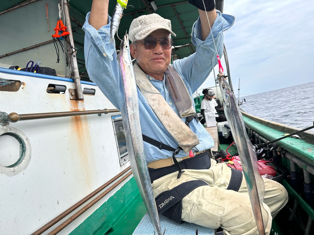 釣果情報 · 2023/09/04 9月4日(月)タチウオ 今日は少し涼しく、アタリもずっとでていい感じでした!指3本くらいのタチウオも多くなってきた感じです。皆さん30匹以上釣られていました👍 今村さん タチウオ 90センチまで 70匹😱 明日(火)もすいてます。 ご予約お待ちしております! tagPlaceholderカテゴリ: 2023年 9月
