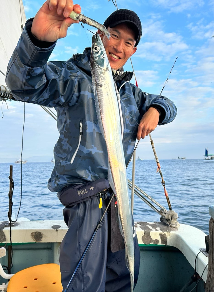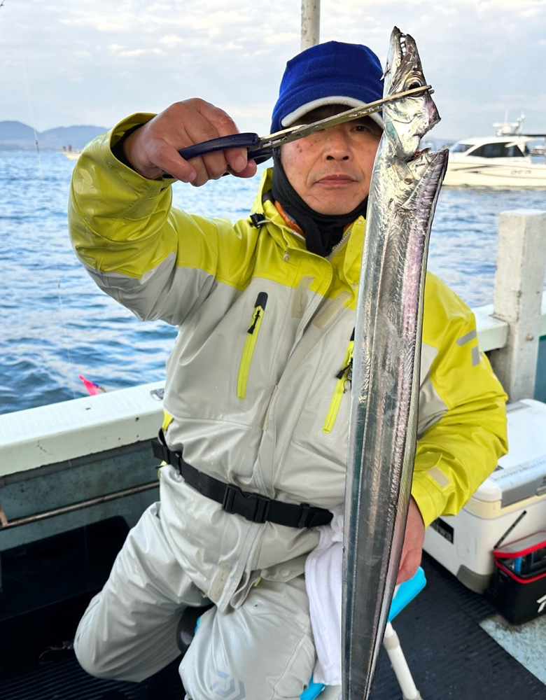 釣果情報 · 2024/01/06 1月6日(土)タチウオ 今日も朝イチからアタリが出ていました。食い気のあるアタリも結構あり良い感じでした! 終盤はポツポツでした。 松本さん タチウオ 90センチまで 30匹‼️ 順調に釣果を伸ばしてました👏 サワラ90センチ超🎉 tagPlaceholderカテゴリ: 2024年 1月