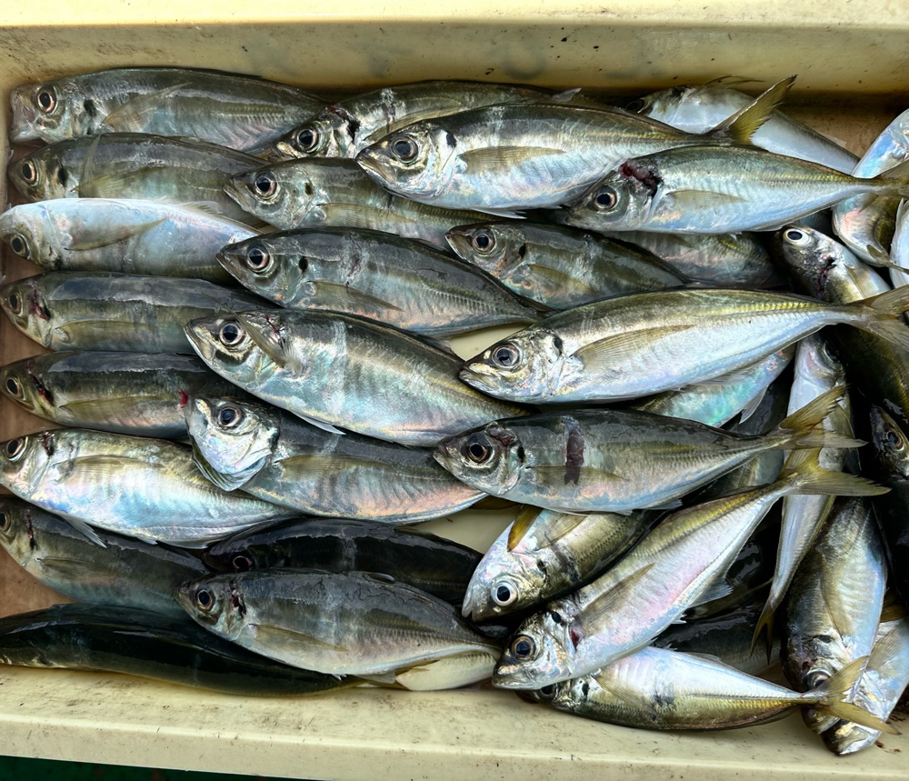 朝イチだけ小ぶりのアジでしたが、途中からいつものサイズが釣れだしました!
