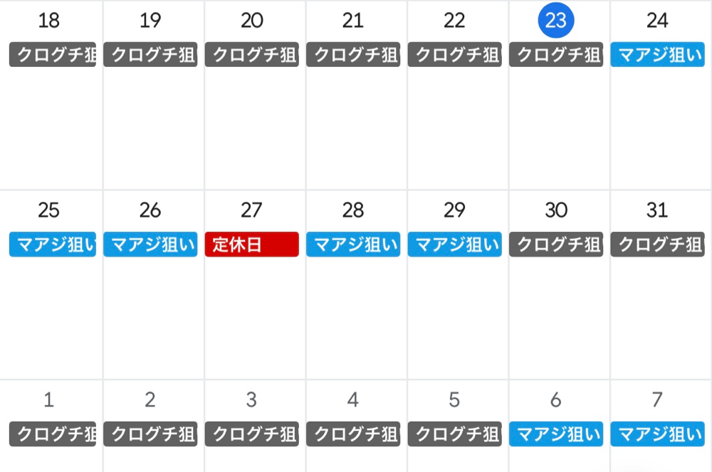 釣果情報 · 2025/05/23 5月23日(金) 今日は人数揃わずお休みでした💦 クログチ狙い、良いサイズが釣れていたので次回の潮周りも予定しておりますのでよろしくお願いします。 明日(土)はマアジ狙いです。 ゆったりと空いてます。 tagPlaceholderカテゴリ: 2025年 5月