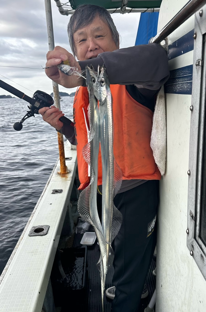 釣果情報 · 2025/10/05 10月5日(日)タチウオ 今日も朝イチからアタリが出ていました〜 途中2枚潮のキツい時間帯もありましたが、順調に釣れています😁 岡坂さん タチウオ 95センチまで 31匹‼️ ダブル〜 サワラ〜 明日(月)はまだ🈳ありまーす。 平日はどの日も🈳ありです。 ご予約お待ちしております! tagPlaceholderカテゴリ: 2025年 10月
