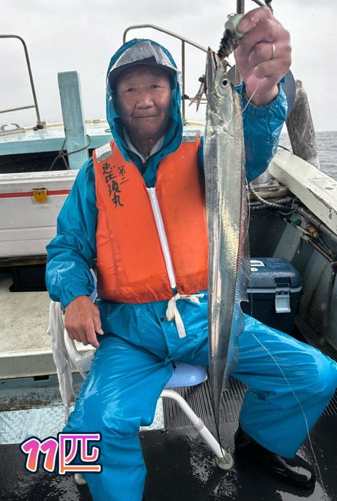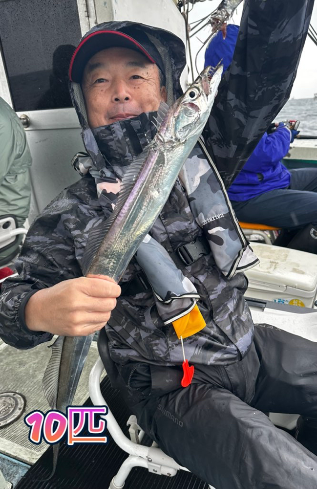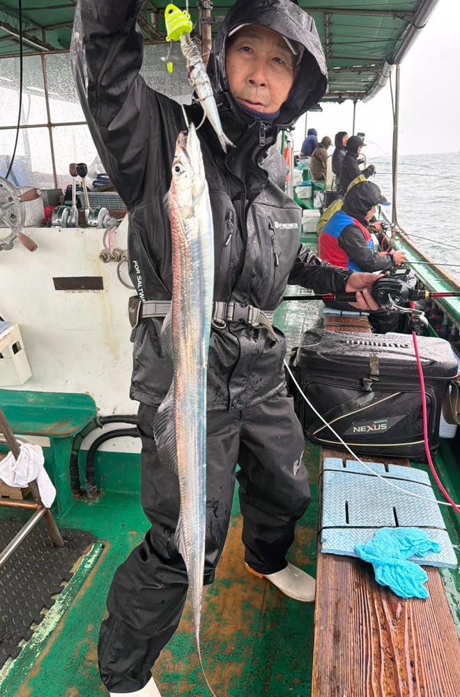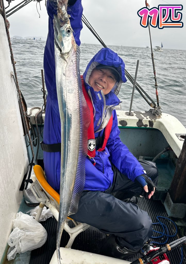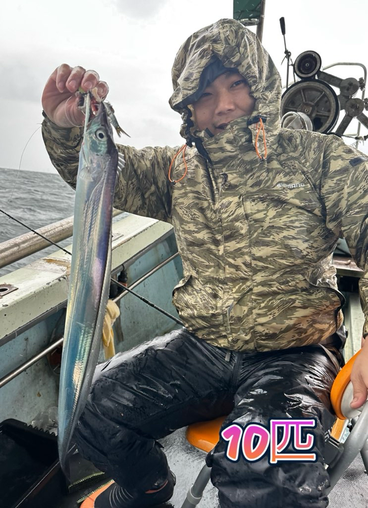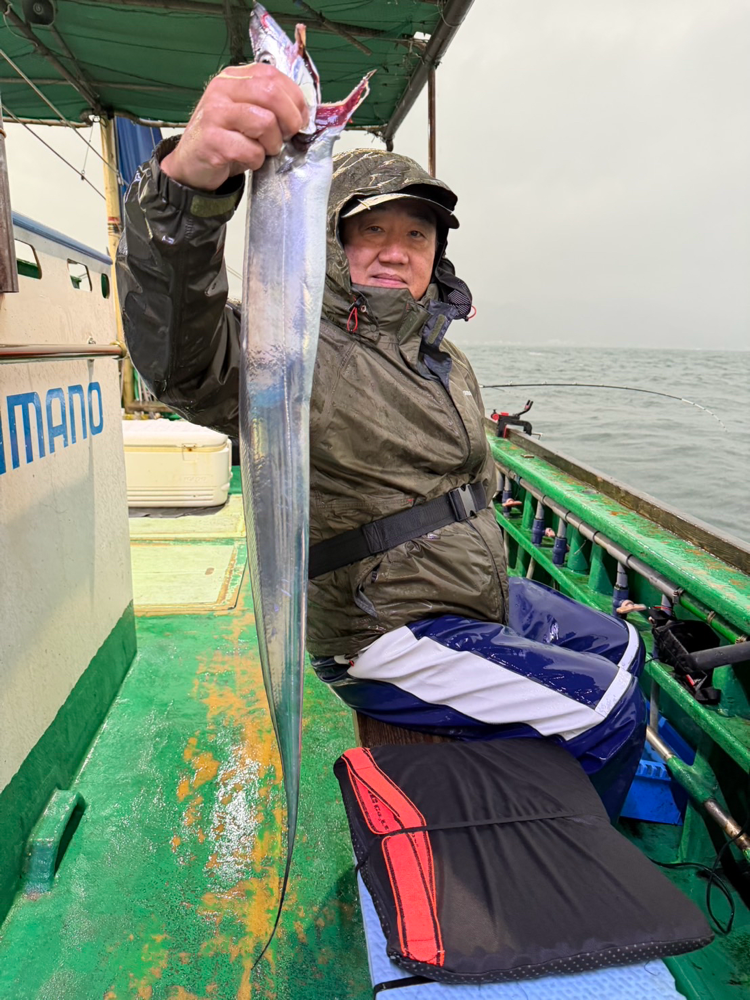 釣果情報 · 2025/11/09 11月9日(日)タチウオ 予報通りの雨で寒かったです。おまけに今日も予想以上に波高く釣りにくかったですね🥲 途中からぼちぼちとアタリがでてきましたが、なかなか掛かりにくかったようです。 悪条件でしたが、最後まで皆さん頑張ってくれました! 高垣さん タチウオ 90センチまで 13匹‼️ tagPlaceholderカテゴリ: 2025年 11月