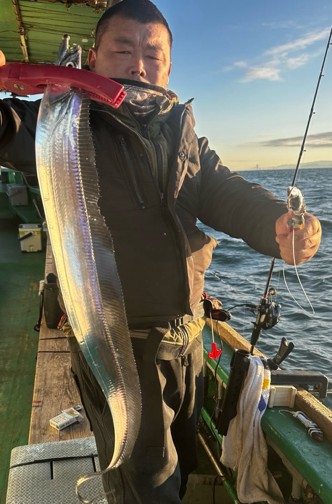 釣果情報 · 2025/12/19 12月19日(金)タチウオ 波の高かった昨日よりは順調に釣れていました! 終盤は潮速くなりアタリが減ってしまった😭 清原さん タチウオ 90センチまで 17匹‼️ 明日(土)も穏やかそうですね まだ🈳あります。 21日(日)はゆったりと空いてます。 tagPlaceholderカテゴリ: 2025年 12月